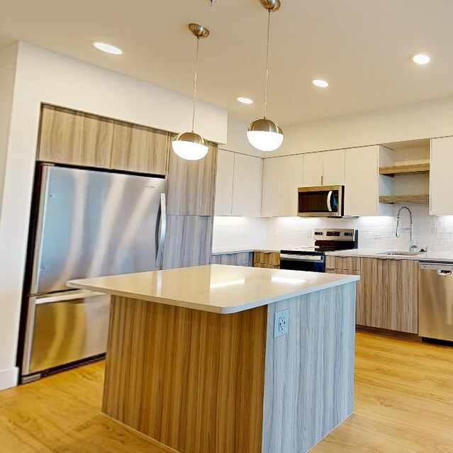 At home, each of The Brynn’s pet-friendly studio, 1, and 2 bedroom apartments is a relaxing haven where style meets function. No matter which floor plan is right for you, you’ll enjoy the comforts and convenience of in-home laundry, durable wood-style plank flooring, and an in-home heating and cooling unit. Select homes include desirable upgrades such as a kitchen pantry, a linen closet, or a built-in desk.